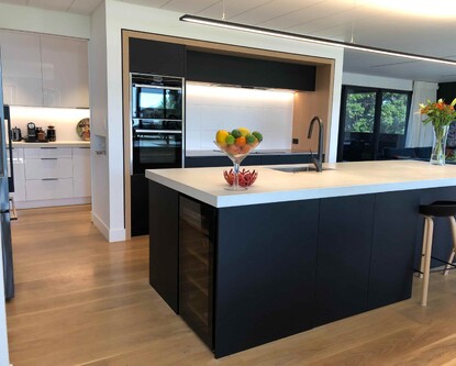 di Rosa are specialists in designer custom made kitchens. Whether it be a new build, or a renovation project, we will work with you to design and make your ideal bespoke kitchen. After an initial consultation, all designs are done on a 3D computer programe. We have a huge range of products for you to look at in our showroom, to help with your decision making. Once the layout is finalised and products selected, then all manufacturing takes place here at di Rosas factory in Matamata. We also install ourselves, so we have full control on the process from start to finish.